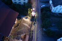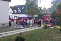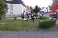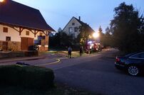 Nach dem Eintreffen der Feuerwehr Tengen lässt Einsatzleiter Veit sofort die Drehleiter aus Engen sowie die Abt. Wiechs a.R. nachalarmieren. Das LF 16/12 beginnt mit der Menschenrettung aus dem zweiten OG über die Steckleiter sowie parallel dazu mit der Brandbekämpfung im ersten OG.
