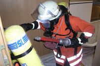 - Zimmerbrand im 1. OG mit Vornahme eines C-Rohres gefüllt mit Wasser sowie eingeschränkte Sicht des Atemschutzträgers