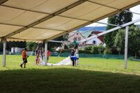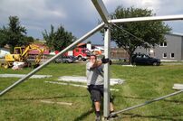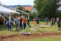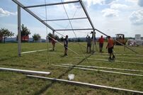 Am Samstag hieß es wieder Arbeitseinsatz mit weiteren Arbeiten auf dem Lagerplatz sowie im Festzelt. Von unserem Mähtrupp wurde der gesamte Zeltplatz gemäht, das Kochteam aus Rielasingen-Worblingen stellte bereits das Koch- und Spülzelt auf.