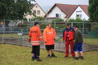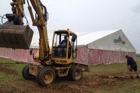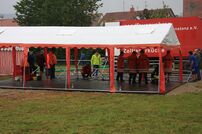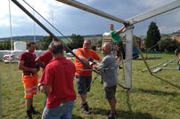 Zahlreiche Kameraden stellten bereits am Freitagnachmittag das große Verpflegungszelt auf. Anschließend wurde die Bühne aufgebaut.