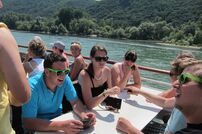 Nach der Anreise stand als erstes die Besichtigung des Loreleyfelsens in St. Goarshausen auf dem Programm. Mit dem Bus ging es weiter nach Assmannshausen zur Schifffahrt nach Rüdesheim am Rhein. In der Zeit zur freien Verfügung konnte die bekannte Drosselgasse oder das Asbach Besucher Center besucht werden. Nach dem gemeinsamen Abendessen in Mainz blieb jedem noch ausreichend Zeit, um bei hochsommerlichen Temperaturen das Nachtleben in der Landeshauptstadt von Rheinland-Pfalz zu genießen.
