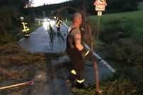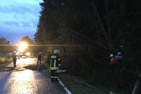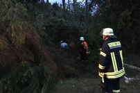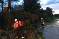 Bei der Einsatzübernahme hieß die Meldung mehrere Bäume auf der Kreisstraße 6137 zwischen Tengen Berghof und Leipferdingen. Am Einsatzort angekommen mussten mehrere Bäume die auf der Straße lagen beseitigt werden. Diese Arbeiten waren nicht ganz ungefährlich, da die Bäume mit kompletter Wurzel umgedrückt waren und dies beim Sägen zu Spannungen am Stamm führte. Ein hängender Baum musste ebenfalls noch beseitigt werden, da dieser drohte auf die Fahrbahn zu stürzen.