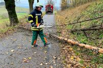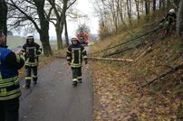 Mit der Motorsäge vom LF 8/6 wurden die Bäume umgesagt und am Straßenrand gelagert, so dass keine weitere Gefahr mehr für die Bevölkerung bestand.