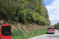 Nach dem Eintreffen wurde zunächst der Einsatzort gegenüber dem fließenden Verkehr abgesichert. Um an den Baum zu kommen, der oberhalb von einer steilen Böschung hing, musste die 4-teilige Steckleiter in Stellung gebracht werden. Der Baum wurde anschließend umgesägt und aus dem Straßenbereich entfernt, wozu die Straße kurzzeitig gesperrt werden musste.