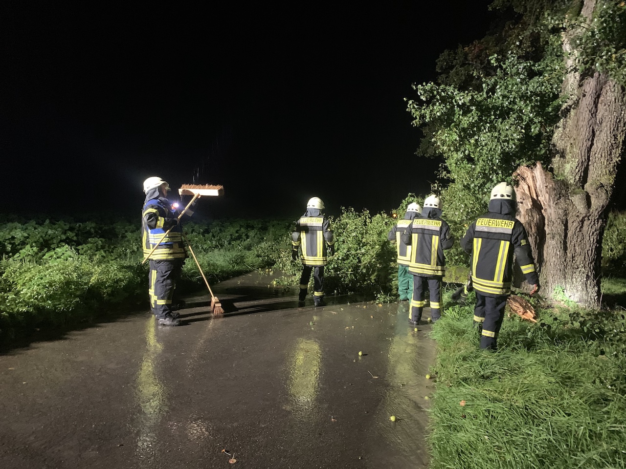 Vor Ort wurde der Ast mit einer Kettensäge in handliche Stücke zersägt und am Fahrbahnrand abgelegt. Nach der abschließenden Reinigung der Fahrbahn wurde das Einsatzende an die Leitstelle gemeldet, und die Einsatzkräfte konnten wieder einrücken.