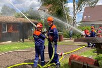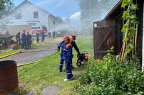 Um 14:00 Uhr führte die Jugendfeuerwehr eine Abschluss-Showübung durch. Die Alarmmeldung lautete Brand eines Geräteschuppens, eine Person vermisst. Mit zwei Löschfahrzeugen konnte das Können der Jugendlichen den Eltern und zahlreichen Interessierten dargestellt werden.