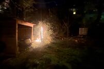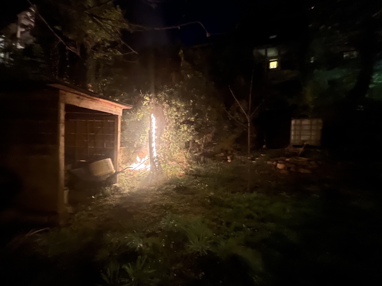 Brand Holztrennwand und Efeuhecke