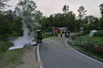 Mit dem Einsatzstichwort „B2 PKW Elektroantrieb außerorts“ wurde an Pfingstmontag die Abteilung Tengen über die Einsatzschleife Vollalarm Abt. in die Schwarzwaldstraße alarmiert.