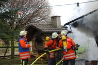 Nach dem Eintreffen des ELW-1 mit Kommandant Wolfgang Veit wurde eine Gartenlaube in Vollbrand vorgefunden. Von der Abteilung Watterdingen wurde eine Riegelstellung aufgebaut, die ein Übergreifen auf ein angrenzendes Gebäude verhinderte. Ein Innenangriff erfolgte mittels OneSeven des LF 16/12 der Feuerwehr Tengen, nachdem sichergestellt war, dass sich keine Personen mehr in der Laube befanden.