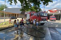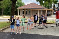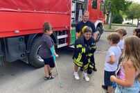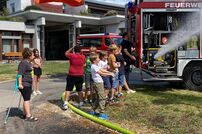Bei den sommerlichen Temperaturen durften die Schüler noch mit dem Strahlrohr üben bevor es mit dem Feuerwehrauto wieder an die Schule ging. Somit war es auch in aller Hinsicht ein abwechslungsreicher und interessanter Schultag.