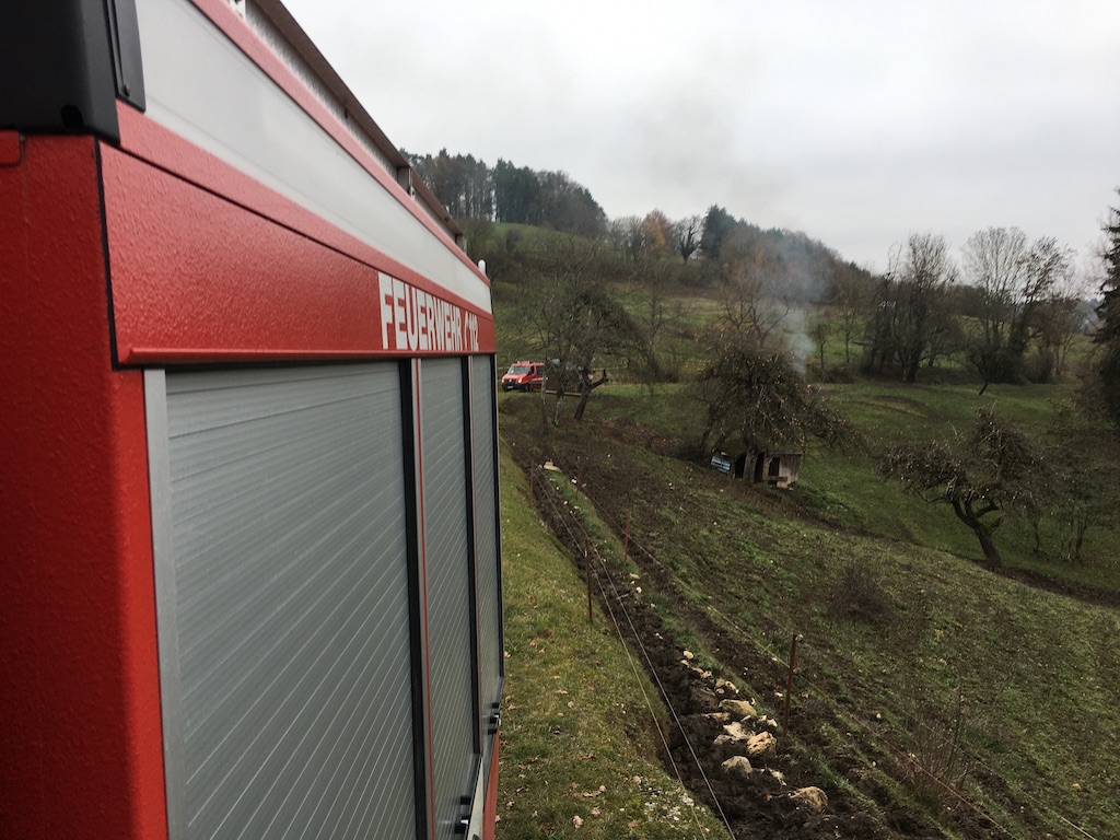 Um die Mittagszeit wurden die Kameraden am Dienstag, 24. November nach Blumenfeld alarmiert. Das Einsatzstichwort der Leitstelle war „Offenes Feuer mit dunkler Rauchwolke“.