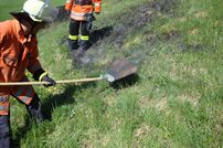 Nach dem Eintreffen des LF 16/12 mit Gruppenführer Andreas Zeller wurde ein ca. 180 m2 großer Flächenbrand vorgefunden. Da die Flammen sich nur sehr langsam in Richtung Wald bewegten konnte auf einen Löscheinsatz verzichtet werden. Statt dessen wurden die letzten Flammen mit Waldbrandpatschen erstickt.