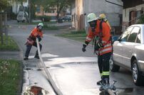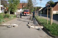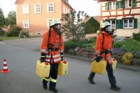 - Zwei gefüllte B–Schläuche 40 m ziehen