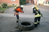 An der zweiten Station mussten die Atemschutzträger ihre Belastung unter Beweis stellen. Es mussten die folgenden Aufgaben bewältigt werden: