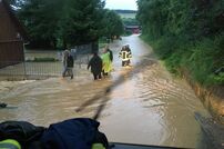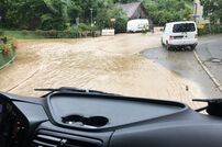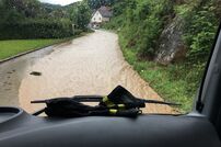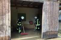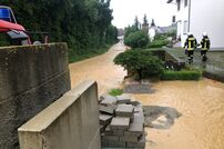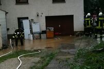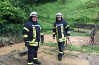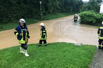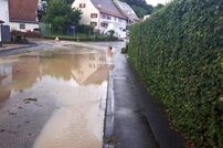 Die erste Einsatzstelle war im Ortsteil Uttenhofen, wo der Lauterbach über die Ufer getreten war. Auf der Rückfahrt zum Feuerwehrhaus gab es weitere Alarmierungen der Leitstelle. Zur Koordination der Unwetterlage wurde die Führungsgruppe im ELW-1 am Feuerwehrhaus eingerichtet. Auch Bürgermeister Marian Schreier machte sich vor Ort ein Bild von der Lage und unterstützte die Einsatzleitung.