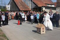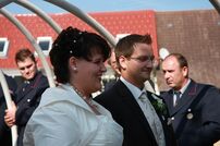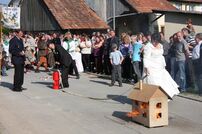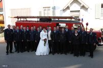 Wie es der Brauch so will stand die FFW Tengen dem frisch vermählten Paar Spalier und begrüßten Ihren frisch getauften Sohn Luca mit drei Kanonenschüssen.