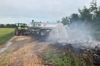 Obwohl die Brandstelle um 18.00 Uhr kontrolliert wurde, erfolgte gegen 19.00 Uhr eine erneute Alarmierung durch die Leitstelle. Zum Ablöschen der Restglut kam unser Kamerad Domenic Rothfelder mit seinem 18.000 Liter Wasserfass zum Einsatz.