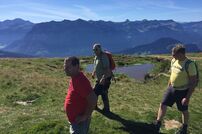 Nach einem ausgiebigen Frühstück am Freitagmorgen mit Bratkartoffeln und Spiegelei, starteten wir gestärkt in Richtung Bezau. Von dort aus erreichten wir mit der Seilbahn die Bergstation. Bei bestem Wetter und mit herrlichem Rundumblick auf die Voralpen und den Bodensee, führte die Wanderung über den Panoramaweg zur Mittelstation.