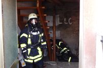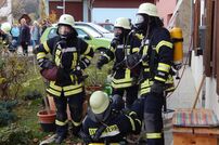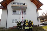 Die Übungsannahme lautete: Durch das Befeuern der Holzheizung im Brachwiesenweg 1 kommt es zum Überhitzen des Kamins im Dachbereich und dadurch zum Brand. Da die Häuser aneinander gebaut sind, droht der Brand auf die angrenzenden Häuser überzugreifen. Beim rechten Nachbargebäude stehen die Balkontüren im rückwärtigen Bereich offen und so kommt es zu einer starken Verrauchung der einzelnen Räume.