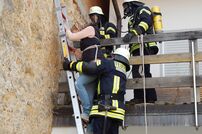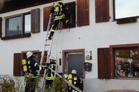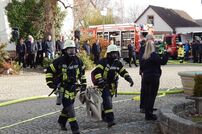 Zum Zeitpunkt des Brandausbruches befindet sich eine Person im mittleren Gebäude und zwei im rechten Gebäude, ihnen ist der Fluchtweg durch die starke Rauchentwicklung über das Treppenhaus versperrt. Auch ein verletzter Kamerad unter Atemschutz muss während der Übung über die Mayday Meldung gerettet werden.