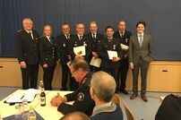 Bürgermeister Schreier betonte die Wichtigkeit der Feuerwehr und hob neben den einsatztaktischen Pflichtaufgaben auch die soziale Funktion in der Gemeinde durch Mitwirkung im gesellschaftlichen und kulturellen Leben hervor. Abschließend zitierte er den kürzlich verstorbenen Alt-Bundeskanzler Helmut Schmidt: «Ich habe die Angehörigen der Feuerwehren als die zuverlässigsten und vertrauenswürdigsten Staatsdiener erlebt».