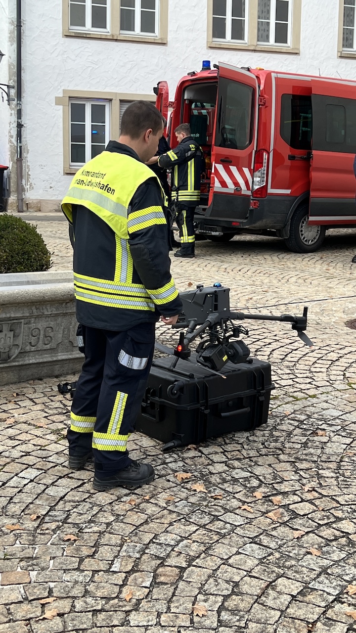 Ein Entstehungsbrand bei den Vorbereitungen einer standesamtlichen Trauung im Trauzimmer, der aufgrund unsachgemäßer Handhabung von Kerzen ausbrach, war die Übungsannahme. Aufgrund der historischen Bebauung greifen die Flammen sehr schnell um sich und breiten sich horizontal wie auch vertikal aus. Zum Zeitpunkt des Geschehens sind fünf Personen im Gebäude anwesend – zwei machen sich an den Fenstern bemerkbar, die anderen drei sind geflüchtet und aufgrund der komplexen baulichen bzw. räumlichen Situation nicht auffindbar.