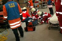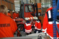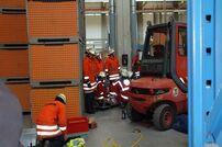 Im zweiten Teil der Übung wurde eine technische Hilfe in der Neubau Halle durchgeführt. Beim Zurückfahren eines Staplerfahrers erfasste dieser einen Mitarbeiter und schleuderte ihn zu Boden. Dabei geriet er unter den Stapler und blieb verletzt liegen. Beim Eintreffen des Rettungsdienstes und der Feuerwehr Tengen mit Einsatzleiter Uwe Veit wurde die Lage zuerst erkundet, dabei entschied man sich den Stapler Mittels Lufthebekissen anzuheben und zu sichern. Der Schwerverletzte konnte somit befreit und dem Rettungsdienst übergeben werden.