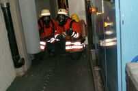 Die Übung bestand wieder aus zwei Teilen. Im ersten Teil konnte ein Brandeinsatz in der Produktionshalle A und B gezeigt werden. Durch einen technischen Defekt am Schalt- und Steuerschrank der Lackieranlage kam es zu einer sehr starken Rauchentwicklung. Die vorhandene Löschanlage war wegen Wartungsarbeiten zu diesem Zeitpunkt außer Betrieb. Nach dem Eintreffen der Abt. Wiechs, erkundete Einsatzleiter Herbert Stihl sofort die Lage und lies seine Atemschutztrupps ausrüsten, da sich laut Schichtführer noch min. 5 Personen in der Produktionshalle befanden. Die Zeitgleich mitalarmierte Feuerwehr Tengen unterstützte die Abteilung bei der Menschenrettung und der Brandbekämpfung. Zum ersten Mal wurde der Einsatzleiter unterstützt durch einen Führungstrupp, der bestimmte Einsatzabläufe koordiniert und regelt. Die Verletzten Personen wurden dem DRK übergeben, die eine Verletzten-Sammelstelle eingerichtet hatte.