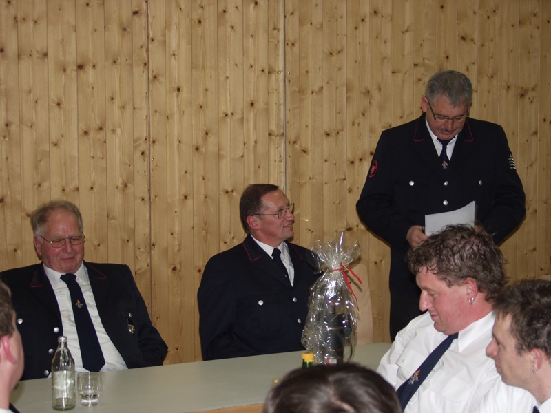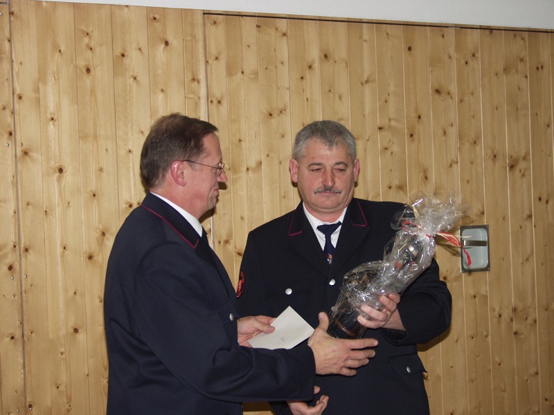 Im Bericht des Kommandanten gab es eine Zusammenfassung über die durchgeführten Feuerwehreinsätze und sonstigen Arbeiten bzw. Tätigkeiten im vergangenen Jubiläumsjahr. Die Kassenprüfer Franz Hofgärtner und Ernst Reischl prüften am 10.01.2011 zum sechzehnten Mal die Kameradschaftskasse. Sie wurde tadellos und detailliert geführt, daher gab es keine Beanstandungen. Für diese langjährige Tätigkeit erhielten sie ein Weinpräsent. Unter dem Tagesordnungspunkt 7 sprach Bürgermeister Groß Dank und Lob den anwesenden Kameraden, wie auch der Jugendfeuerwehr für die geleisteten Arbeiten aus. Weiter sagte BM Groß, man müsse die Jugendlichen für die Feuerwehr begeistern. Auch für das alljährliche Aus- und Einräumen des Feuerwehrhauses anlässlich der Gewerbeausstellung am Schätzele-Markt und die Durchführung des 60. Kreisfeuerwehrtag mit dem 125-jährigen Jubiläum dankte er recht herzlich und äußerte: „Es hatte alles Hand und Fuß”.