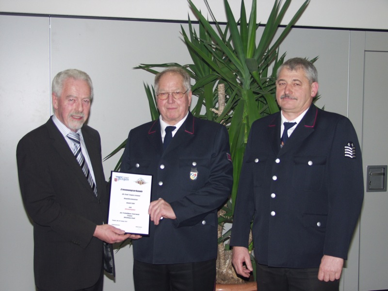 Nach den umfangreichen Wahlen ging es dann mit den Auszeichnungen und Ehrungen weiter. Für null Fehlproben erhielten die Kameraden Erwin Baier, Michael Gräble, Jonas Keller, Michael Keller, Michael Meier, Claus Preter und Michael Ritzi einen Gutschein für den nächsten Ausflug überreicht. Desweitern appellierte Kommandant Veit an die jüngeren Kameraden, sie sollten doch regelmäßig an den Zugproben teilnehmen. Als Neuzugänge begrüßten wir Petra Kirchhoff aus Büßlingen, Stefan Schautzgy aus Nordhalden, der jetzt in Tengen wohnt, und Julia Nägele aus Blumenfeld. Sie treten ihren Dienst offiziell am 01.02.2011 an.
