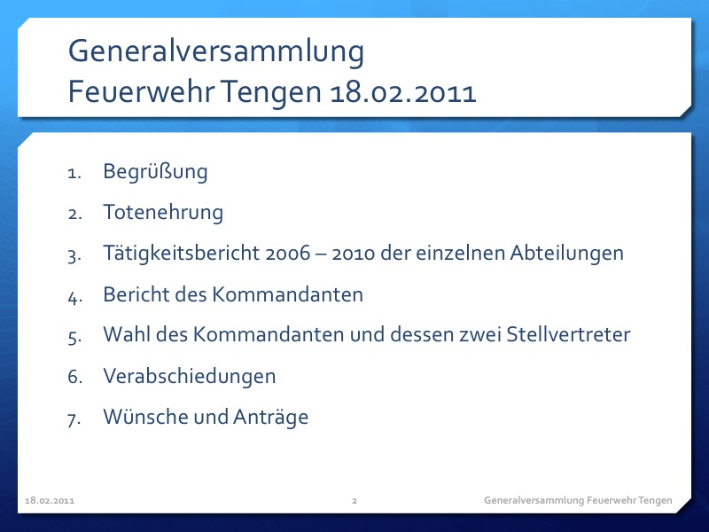 Jahreshauptversammlung 2011 – Gesamtwehr Tengen