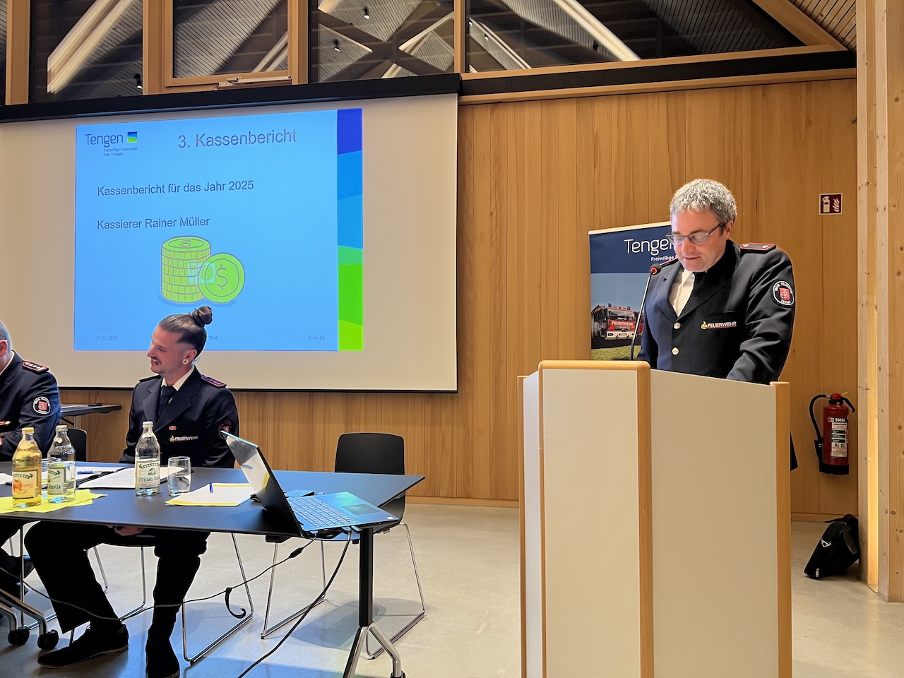 Am Freitag, den 27. Februar 2026, fand die Jahreshauptversammlung der Abteilung Tengen im Bürgersaal statt. Abteilungskommandant Uwe Veit begrüßte alle anwesenden Gäste, die Kameraden der Altersabteilung, Bürgermeister Selcuk Gök, den Ehrenkommandanten Wolfgang Veit sowie alle anwesenden Kameradinnen und Kameraden.