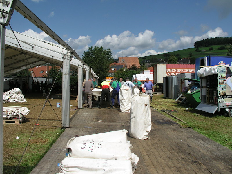 Das Team der Lagerküche um Jürgen Maroni packte die Koch- und Küchenutensilien zusammen und baute das Koch- und Spülzelt ab. Die aktiven Kameraden der Feuerwehr Tengen waren bis zum Abend mit dem Abbau des großen Zelts und weiteren Arbeiten auf dem Lagerplatz beschäftigt.