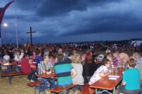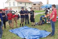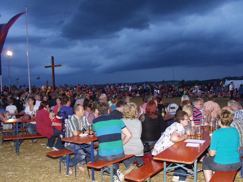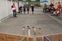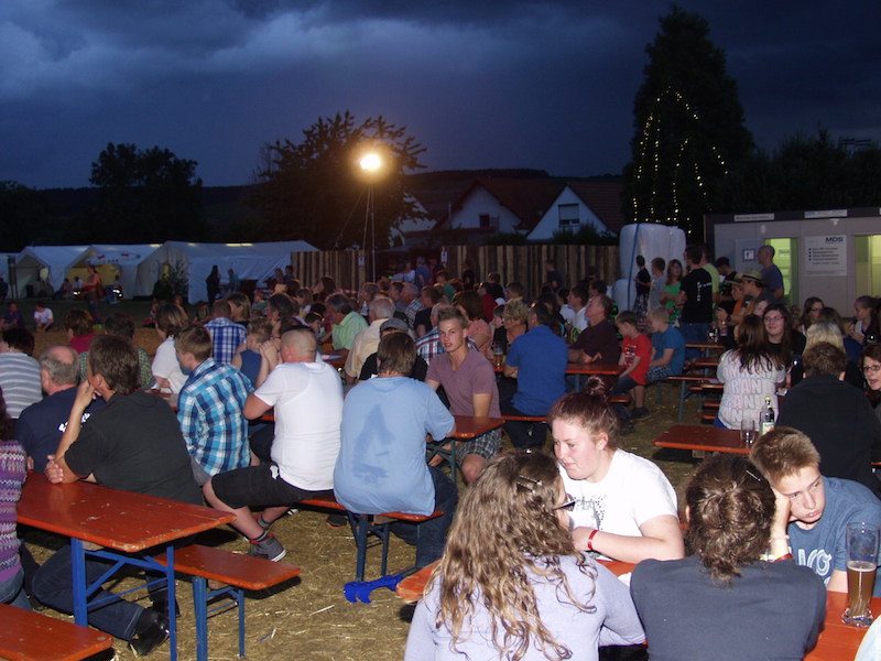 Beim Lagerabend unter dem Motto „Wetten, dass..?“ fanden zunächst unter freiem Himmel die Wetten der Jugendfeuerwehren statt. Kreisjugendwart Markus Löffel führte gekonnt und unterhaltsam durch die Open-Air Show. Als der Himmel immer dunkler wurde und die ersten Regentropfen fielen, ging die Veranstaltung im Festzelt weiter.