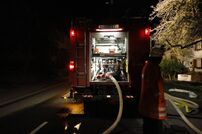 Bereits auf der Anfahrt des Löschgruppenfahrzeuges LF 16/12 mit Gruppenführer Horst Leichenauer rüstete sich ein Trupp mit Atemschutz aus. Dieser, ausgerüstet mit einer HiPress, ging umgehend zur Kontrolle in das Dachgeschoss.