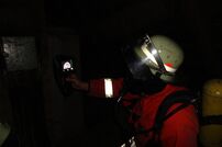 Während der Kamin mittels Wärmebildkamera überprüft wurde, bereiteten zwei weitere Trupps jeweils ein B-Strahlrohr vor und hinter dem Gebäude auf, da die Glut gefährlich über das Dach fiel und ein Brandausbruch in dem angrenzenden Ökonomieteil zwingend verhindert werden musste.