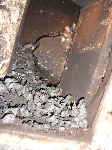 Nach Eintreffen des Einsatzleiters Wolfgang Veit wurde der Kamin begutachtet und alle Stockwerke mit der Wärmebildkamera kontrolliert. Dabei stellte sich heraus, dass es vor kurzem eine Verpuffung im Kachelofen gab, wodurch die Schamott-Innenverkleidung beschädigt wurde.