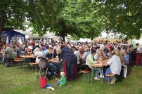 Im Kastaniengarten neben dem Rathaus durften wir bei sommerlichen Temperaturen zahlreiche Gäste willkommen heißen. Für musikalische Unterhaltung sorgten ab 19 Uhr die Randenmusikanten mit bester böhmisch-mährischer Blasmusik.