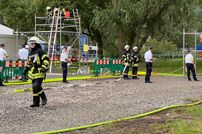 Am Montag fand die erste Kreisfeuerwehrübung mit einer „Wasserförderung lange Wegstrecke“ vom Festgelände bis zur Aussichtsplattform „Blattform“ auf dem Galgenberg statt. Die Stecke hatte eine Länge von ca. 4 km und es galt einen Höhenunterschied von ungefähr 120 Meter zu überwinden. Mit der Pumpe Nr. 17 hatten wir das Glückslos gezogen und wurden vor Ort im Haslen von Familie König mit kühlen Getränken versorgt, ganz herzlichen Dank dafür!