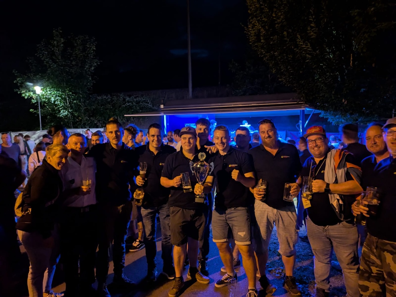 Am Freitag konnten wir mit elf Teilnehmern erneut den Wanderpokal mit nach Hause nehmen. Die Entscheidung war denkbar knapp und musste schließlich durch einen Münzwurf von Kommandant Stefan Kienzler auf der Bühne entschieden werden. Die Kameraden der Feuerwehr Volkertshausen gingen dabei leider leer aus – was uns sehr leid tut.