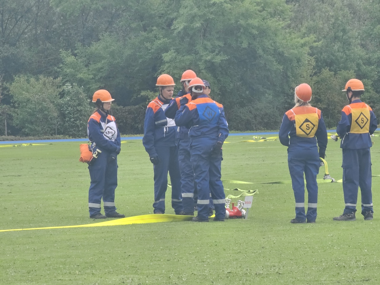 Unter den wachsamen Augen der Schiedsrichter und Abnahmeberechtigten der Landesjugendfeuerwehr wurde die Abnahme der Leistungsspange durchgeführt. Diese stellt die höchste Auszeichnung innerhalb der Jugendfeuerwehr dar und fordert den teilnehmenden Jugendlichen in vielerlei Hinsicht einiges ab.