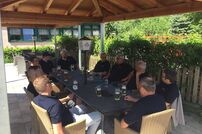 Zu einem ersten Umtrunk führte uns die Fahrt mit dem historischen Löschfahrzeug zunächst in den Gasthof Adler nach Hausen vor Wald. Von dort ging es weiter ins Mostschöpfle nach Hüfingen. Bei eigenem Most und leckeren Bauernspezialitäten wurde in geselliger Runde viel gelacht. Zu später Stunde hat uns der Wirt noch sein Museum im Schosenhof gezeigt, was für uns alle ein tolles Erlebnis war.