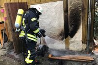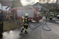 Durch unachtsam entsorgte Asche geriet dort ein Mülleimer in Brand. Glücklicherweise wurde das Feuer rechtzeitig entdeckt und der Besitzer konnte die Flammen mithilfe einer Regentonne in unmittelbarer Nähe noch vor dem Eintreffen der Feuerwehr selbst löschen. Die Fassade wurde durch die Hitzeentwicklung bereits in Mitleidenschaft gezogen. Mit dem Schnellangriff wurde diese gekühlt und nach Glutnestern abgesucht.