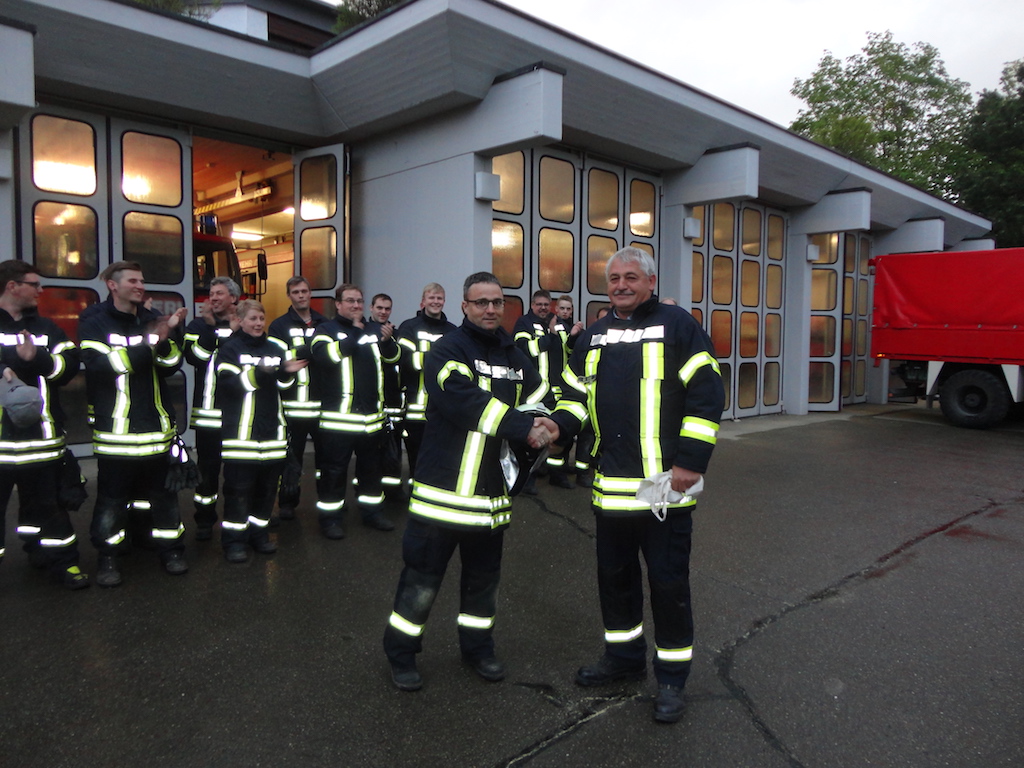 Zum Gruppenführer wurde Rainer Müller nach erfolgreichem zweiwöchigen Gruppenführerlehrgang an der Landesfeuerwehrschule in Bruchsal ernannt. Wolfgang Veit übergab ihm einen neuen Feuerwehrhelm mit dem entsprechenden Dienstgradabzeichen.