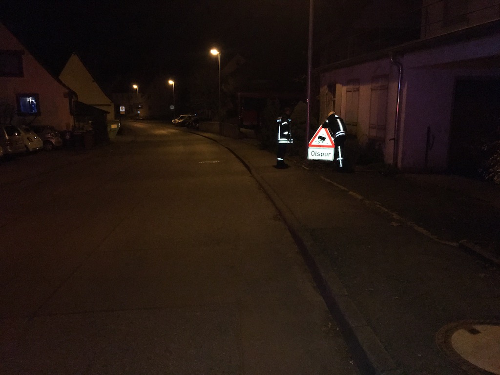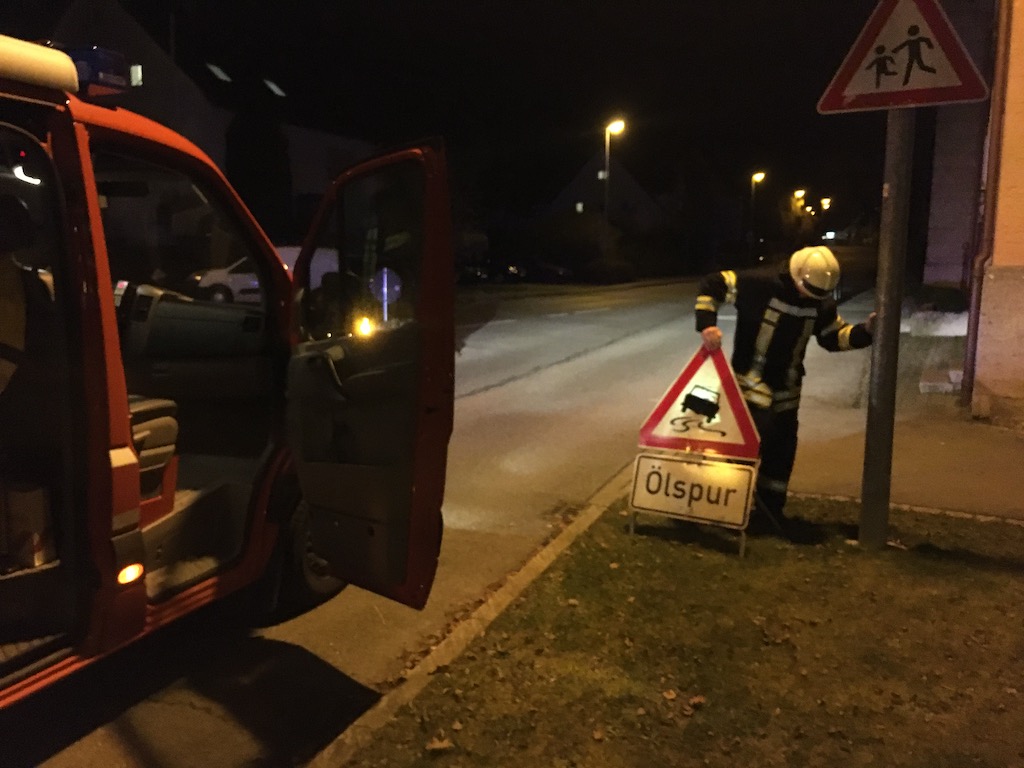 Der Verursacher der Ölspur konnte nicht ausfindig gemacht werden. Zur Sicherung der Gefahrenstelle wurden Warnschilder aufgestellt.