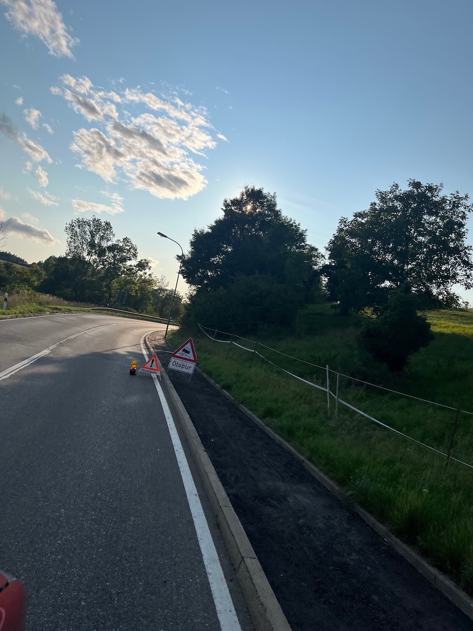 Ölspur auf der Bundesstraße 314