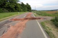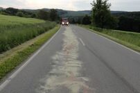 Auf der Verbindungsstraße zwischen Uttenhofen und Wiechs a.R. verlor ein Traktor seinen gesamten Getriebe- und Hydraulikölinhalt. Die ca. 70 Liter wurden auf rund 500 Meter verteilt.