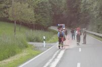 Die alarmierten Kräfte unter Zugführer Andreas Zeller sicherten zuerst die Einsatzstelle bevor größere Mengen an Ölbindemittel ausgebracht wurden.