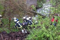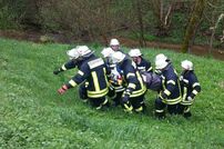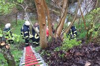 Die Leitstelle alarmierte die Feuerwehr mit dem Einsatzstichwort "Personenrettung - Patient an einem Steilhang abgerutscht". Mit der Steckleiter wurde ein sicherer Zugang geschaffen und bis zum Eintreffen des Rettungsdienst die Erstbetreuung übernommen. Nach der Rettung mittels Spineboard konnte der Verunfallte an den Notarzt übergeben werden.