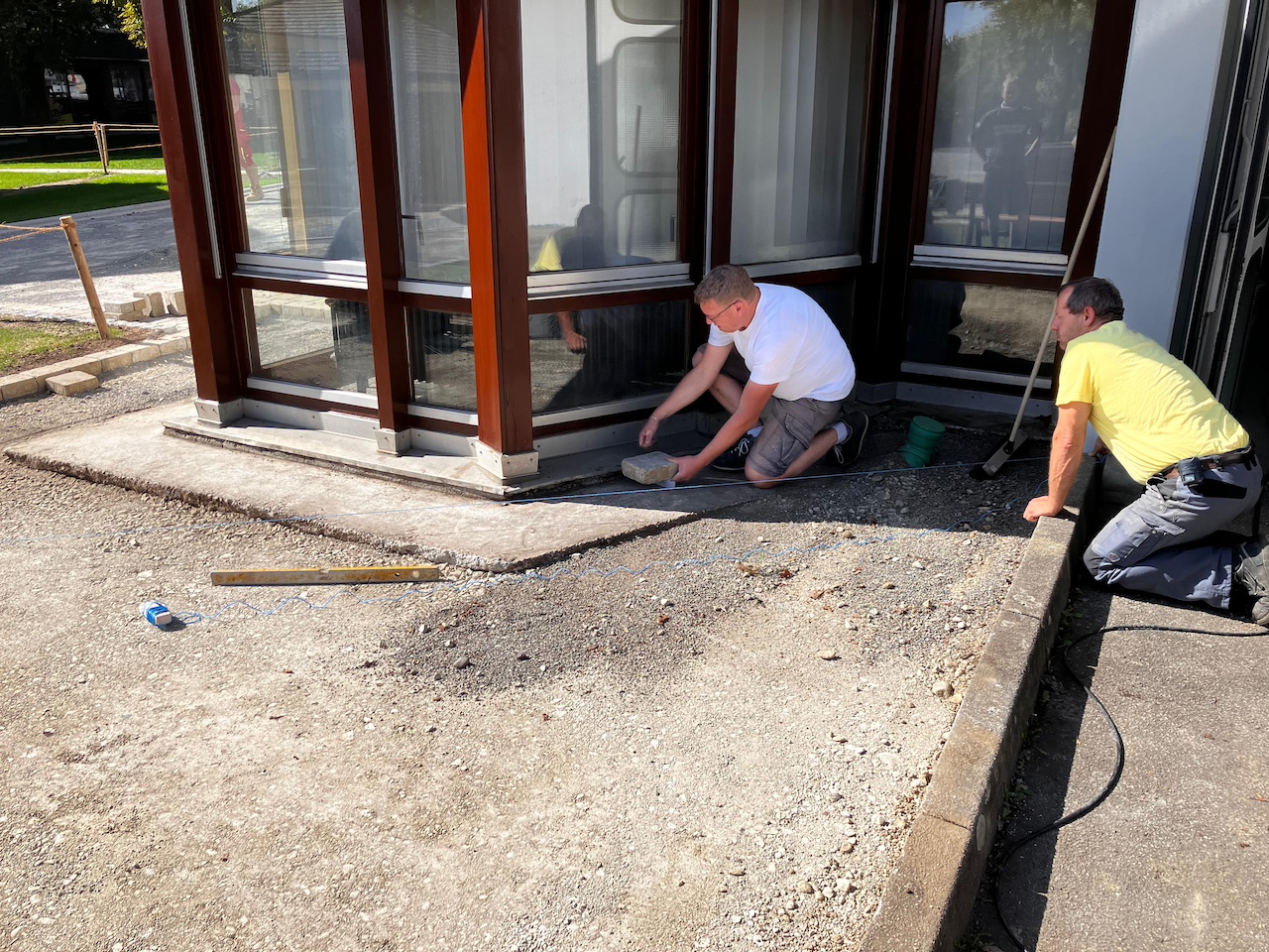 Nach Vorarbeit der Fa. Gartenbau Jäger aus Donaueschingen wurde der Eingangsbereich neu gepflastert.